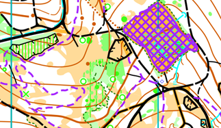 Důležité upozornění: V prostoru závodu je množství tratí pro cyklisty (single trail). V mapě je většina tras zobrazena fialovou přerušovanou barvou. Na single trailech mají přednost cyklisté, pohyb na nich nemůžeme zakázat, ale nicméně ho závodníkům nedoporučujeme. Hustota cyklistů bude silně záviset na počasí a denní době. Dbejte prosím zvýšené opatrnosti!!!